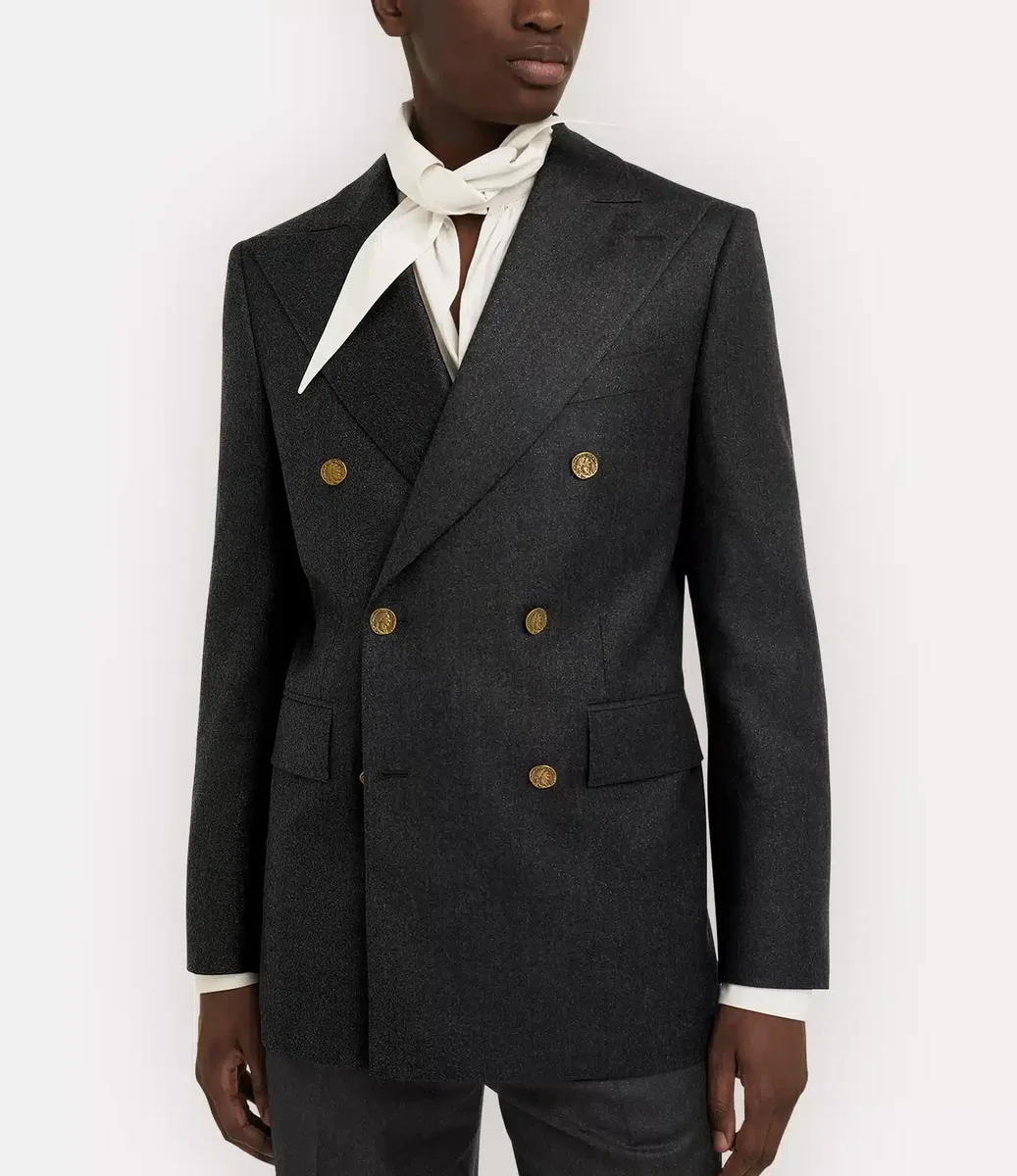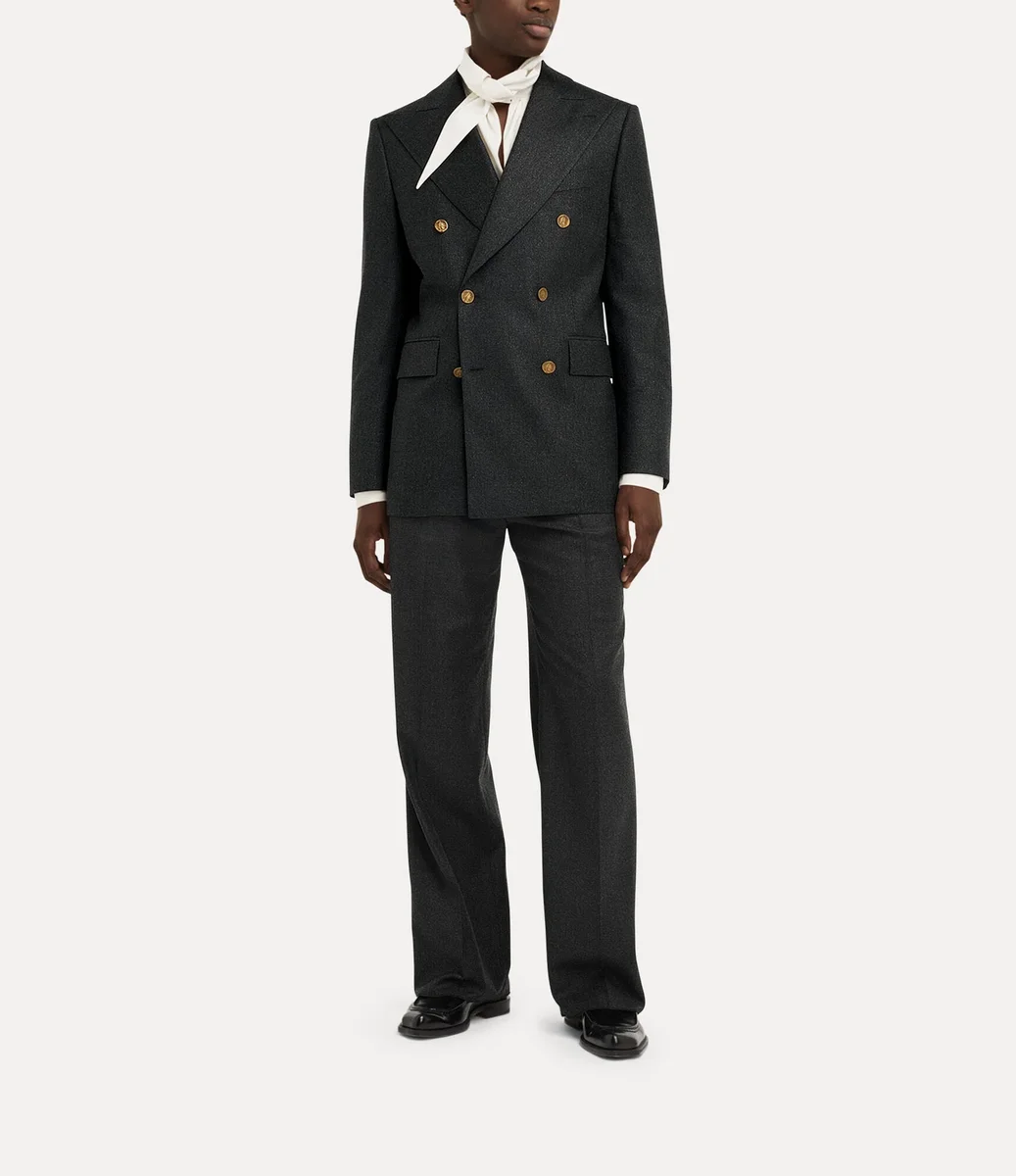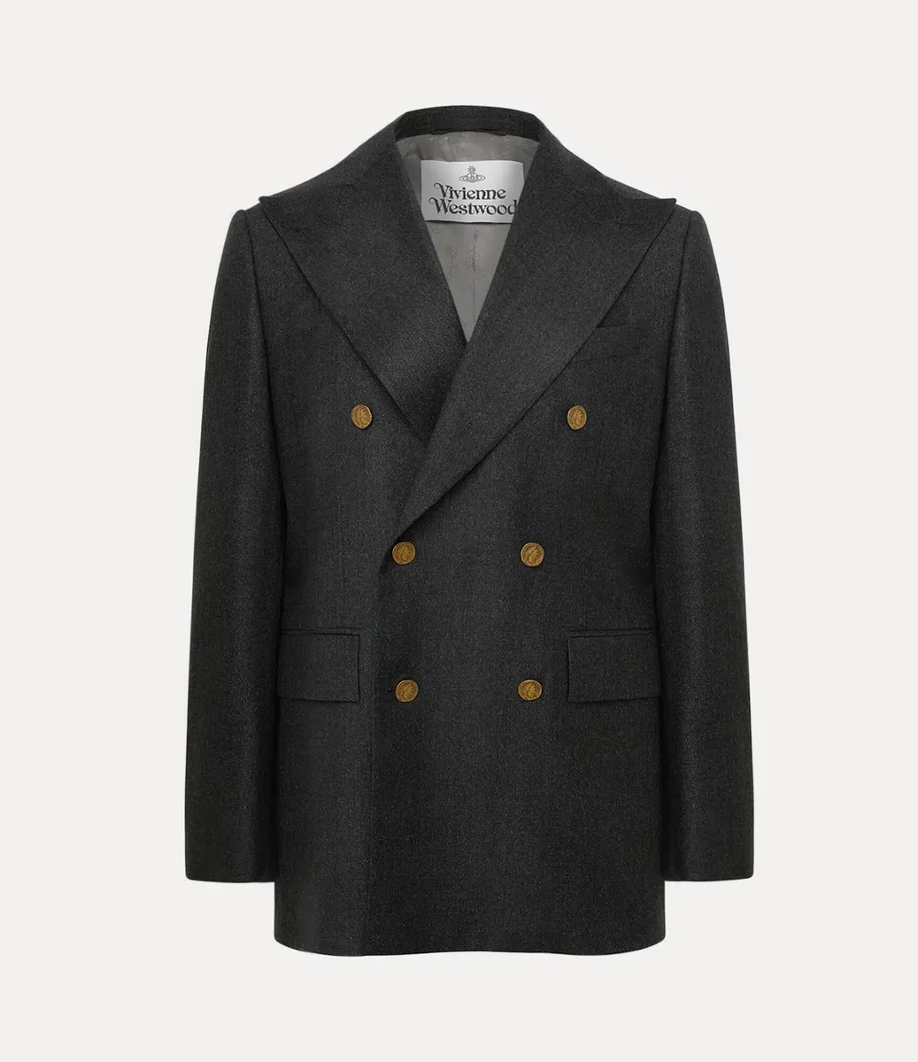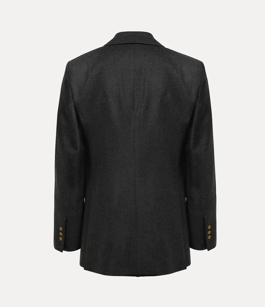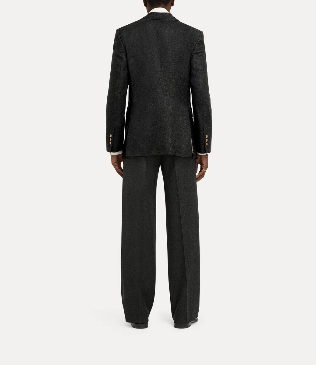 La nostra giacca Captain presenta un profilo in lana, delicatamente intrecciato con una finitura metallica spazzolata. Incorniciata da revers a lancia, la silhouette scende fino a un orlo pulito con spacchi posteriori, completata dalla nostra fodera interna “Tossed Orb”, sinonimo della visione di Vivienne di lanciare la tradizione nel futuro.