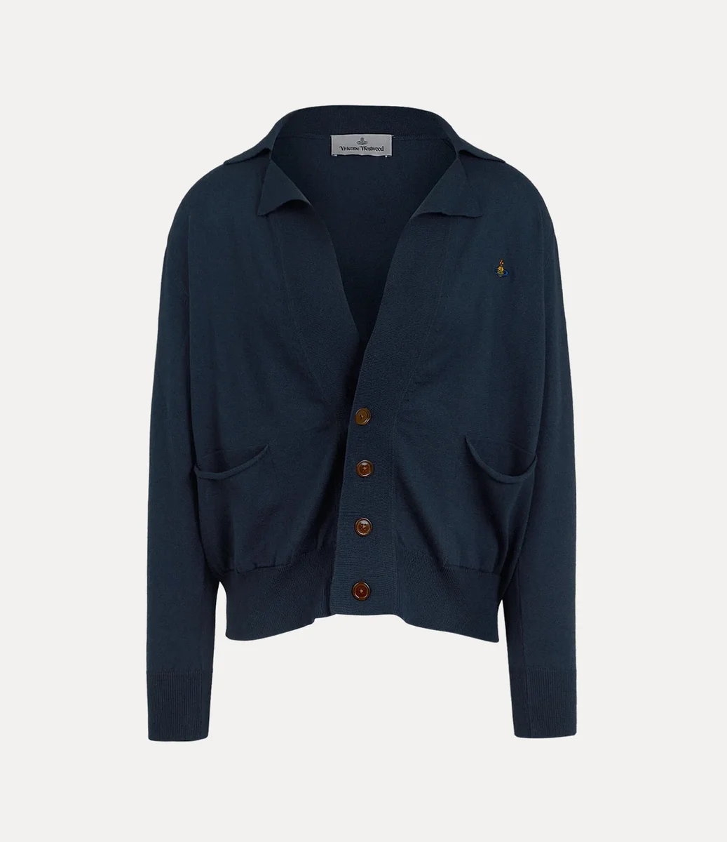 Il nostro cardigan Samuel presenta un collo piatto aperto e uno scollo a V, accentuato da una fila di bottoni color ambra sul davanti. Rifinito con un globo ricamato sul lato sinistro del petto, il capo incarna la visione di Vivienne di portare la tradizione nel futuro.
