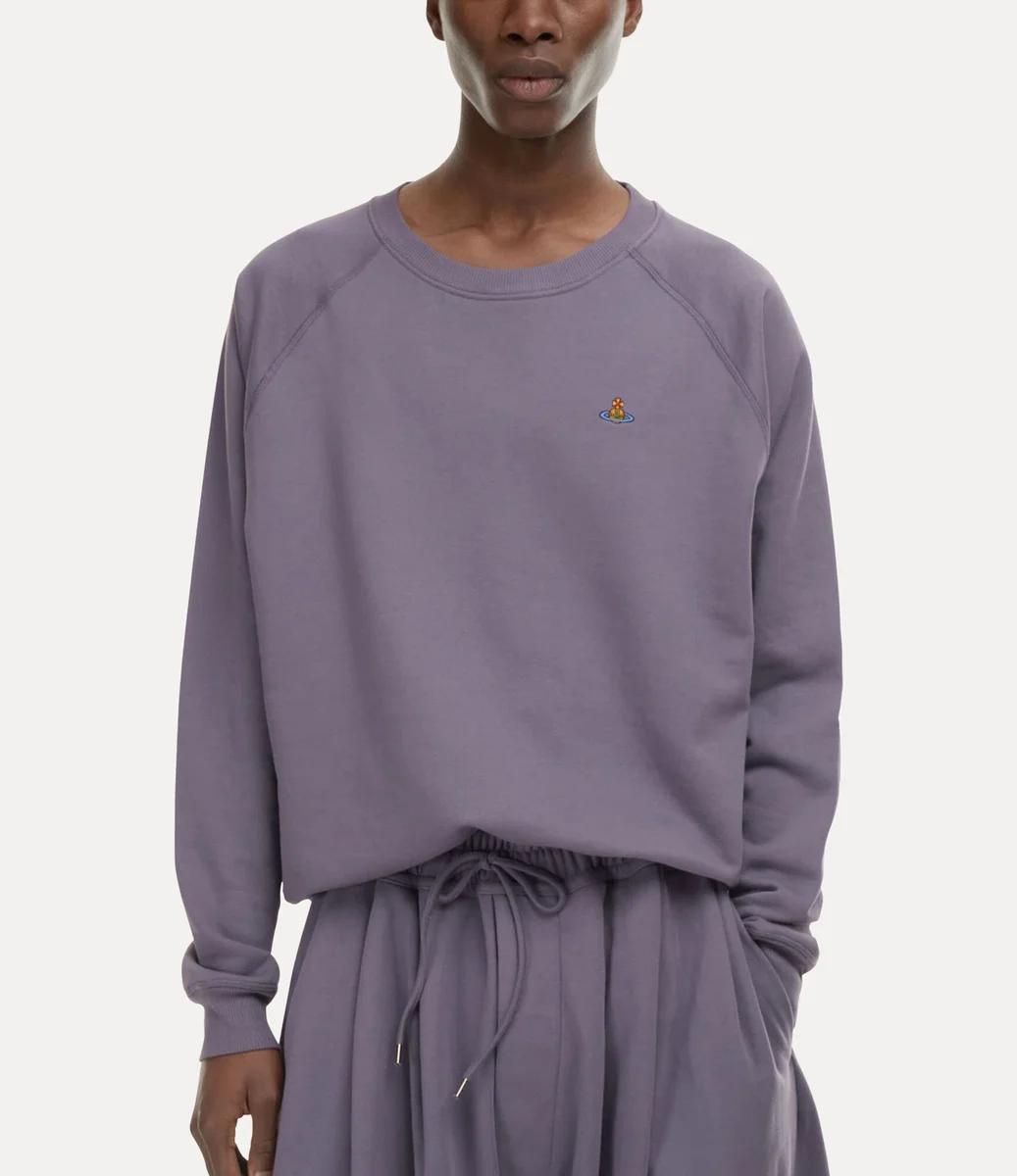 La nostra felpa Raglan è stata riproposta in questa stagione, realizzata in morbido cotone e decorata con un motivo a sfere multicolori sul lato sinistro del petto, sinonimo della visione di Vivienne di portare la tradizione nel futuro. Il capo presenta un girocollo e maniche lunghe raglan, completate da polsini a costine.