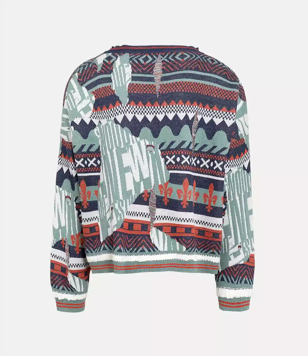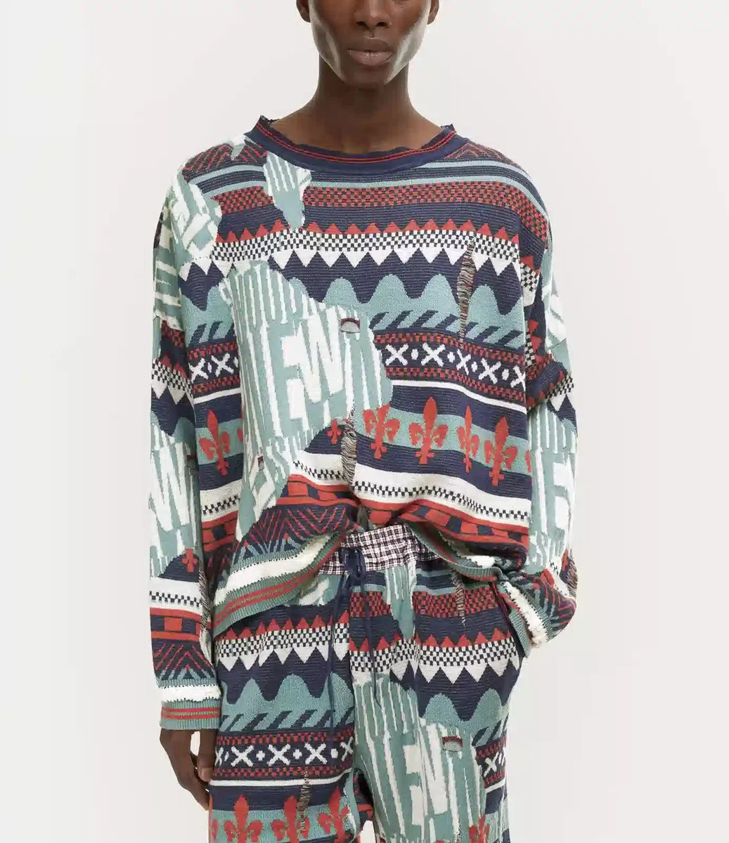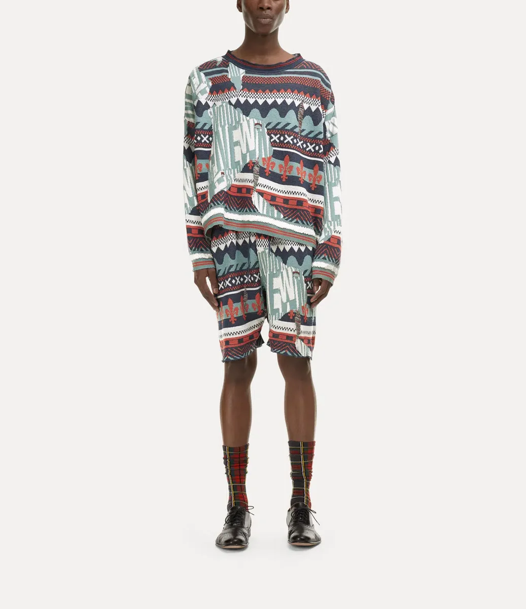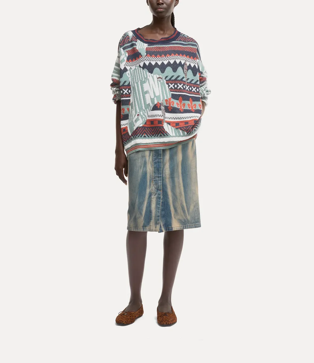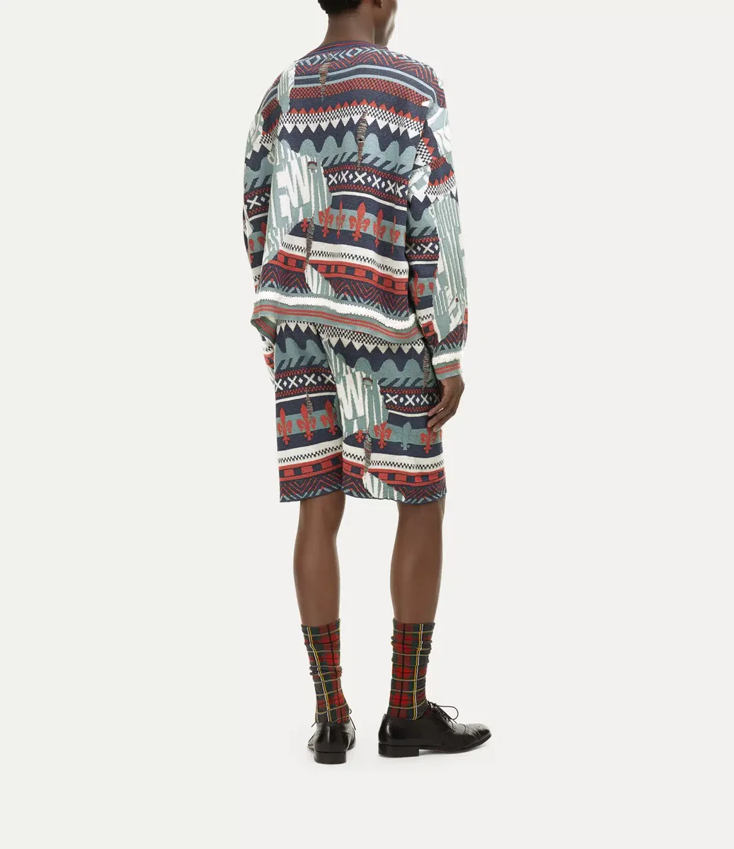 Il nostro maglione Broken Fair Isle presenta il jacquard Fair Isle di questa stagione, intrecciato con l’iconografia distintiva della maison e sezioni sbiadite dove emerge sottilmente il motivo con la scritta “Vivienne Westwood”. Il capo è completato da intricati dettagli consumati, che creano un’estetica destrutturata.