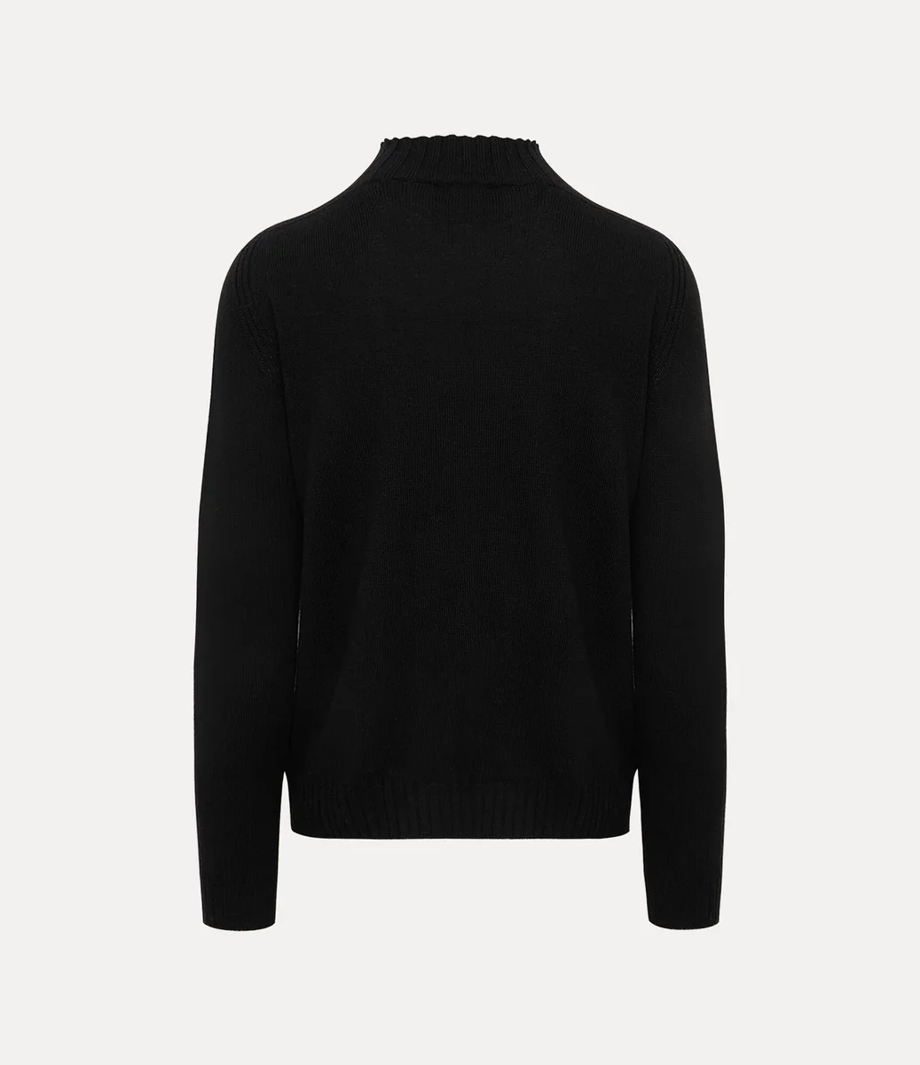 Il nostro maglione Fisherman è realizzato in morbida lana, con scollo a costine che si estende fino all’orlo dritto. Rifinito con maniche lunghe raglan con polsini a costine, il capo è impreziosito da un globo ricamato multicolore sul lato sinistro del petto, che richiama la visione di Vivienne di lanciare la tradizione nel futuro.
