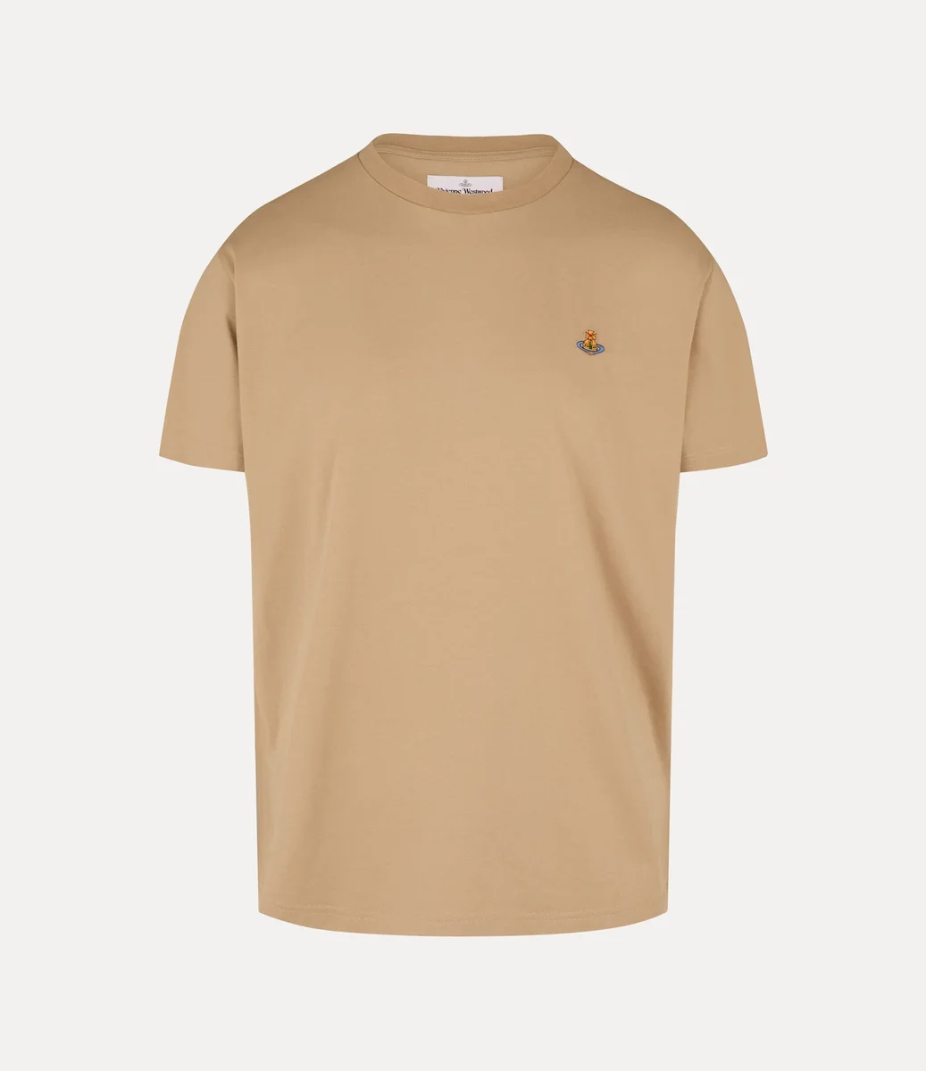 La nostra t-shirt Classic presenta una morbida silhouette in cotone, con maniche corte e scollo rotondo. Il capo è impreziosito da un ricamo multicolore a forma di sfera sul lato sinistro del petto, sinonimo della visione di Vivienne di portare la tradizione nel futuro.
