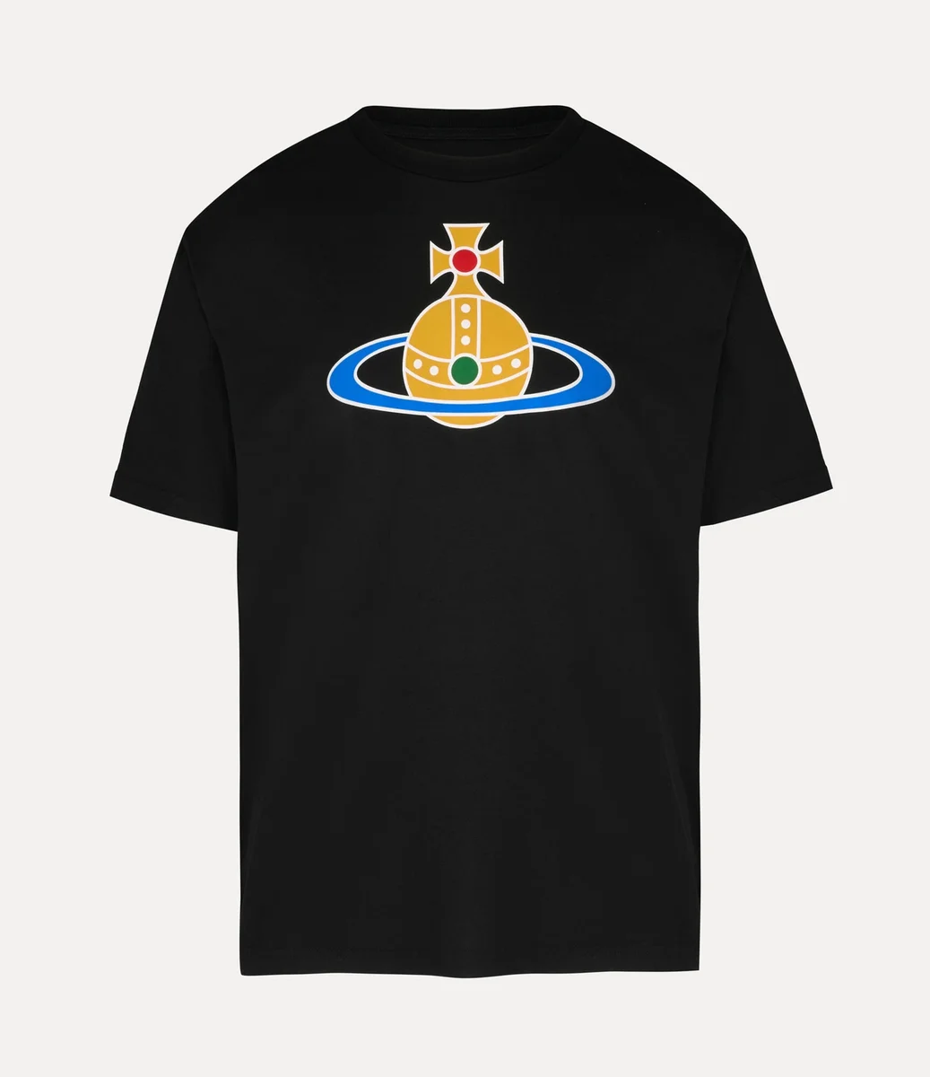 La nostra t-shirt Oversized Orb Classic è realizzata in cotone leggero, con scollo rotondo, maniche corte e orlo dritto. Il capo presenta un motivo orb multicolore stampato sul petto, sinonimo della visione di Vivienne di proiettare la tradizione nel futuro.