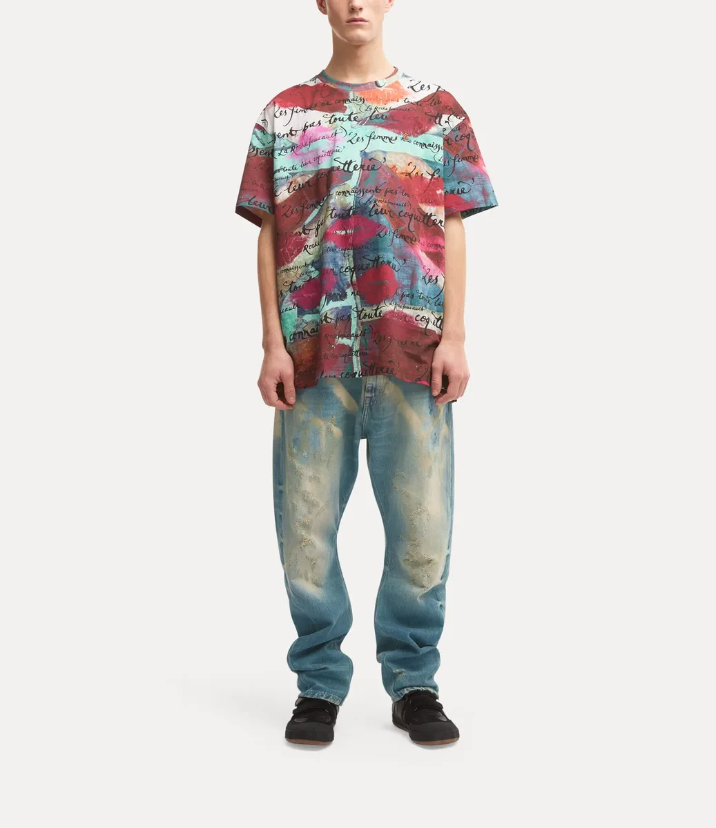 La nostra iconica t-shirt oversize è stata rivisitata in questa stagione con la frase stampata “Les Femmes Ne Connaissent Pas Toute Leur Coquetterie” che impreziosisce il design, richiamando la venerazione di Vivienne per la letteratura. Il modello presenta la grafica “Lipstick Kisses”, ispirata alla confezione del profumo “Boudoir” della maison.