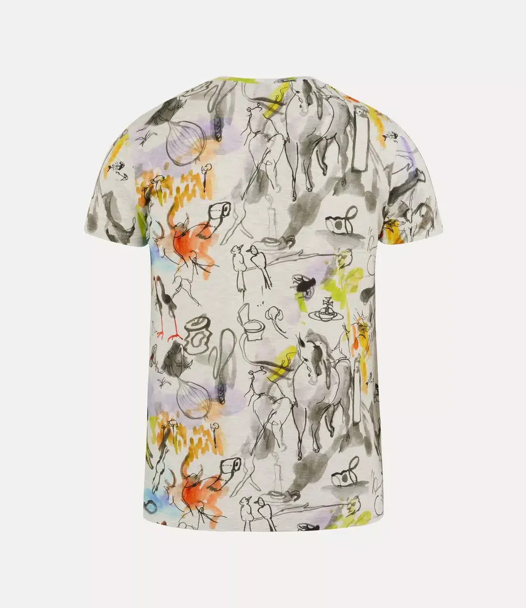 La nostra iconica T-shirt Peru è realizzata in morbido misto cotone e stampata con la grafica “Wonderland” di questa stagione, completa di una serie di intricati motivi disegnati a mano e sovrapposti a spruzzi di acquerello dai toni vivaci. Dal taglio slim con classico girocollo, il modello è rifinito con un ricamo multicolore a forma di globo sul petto.