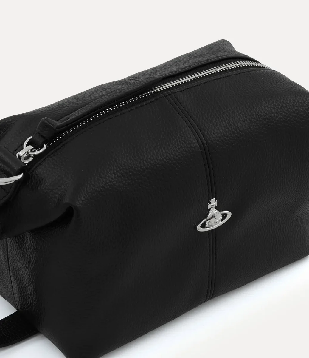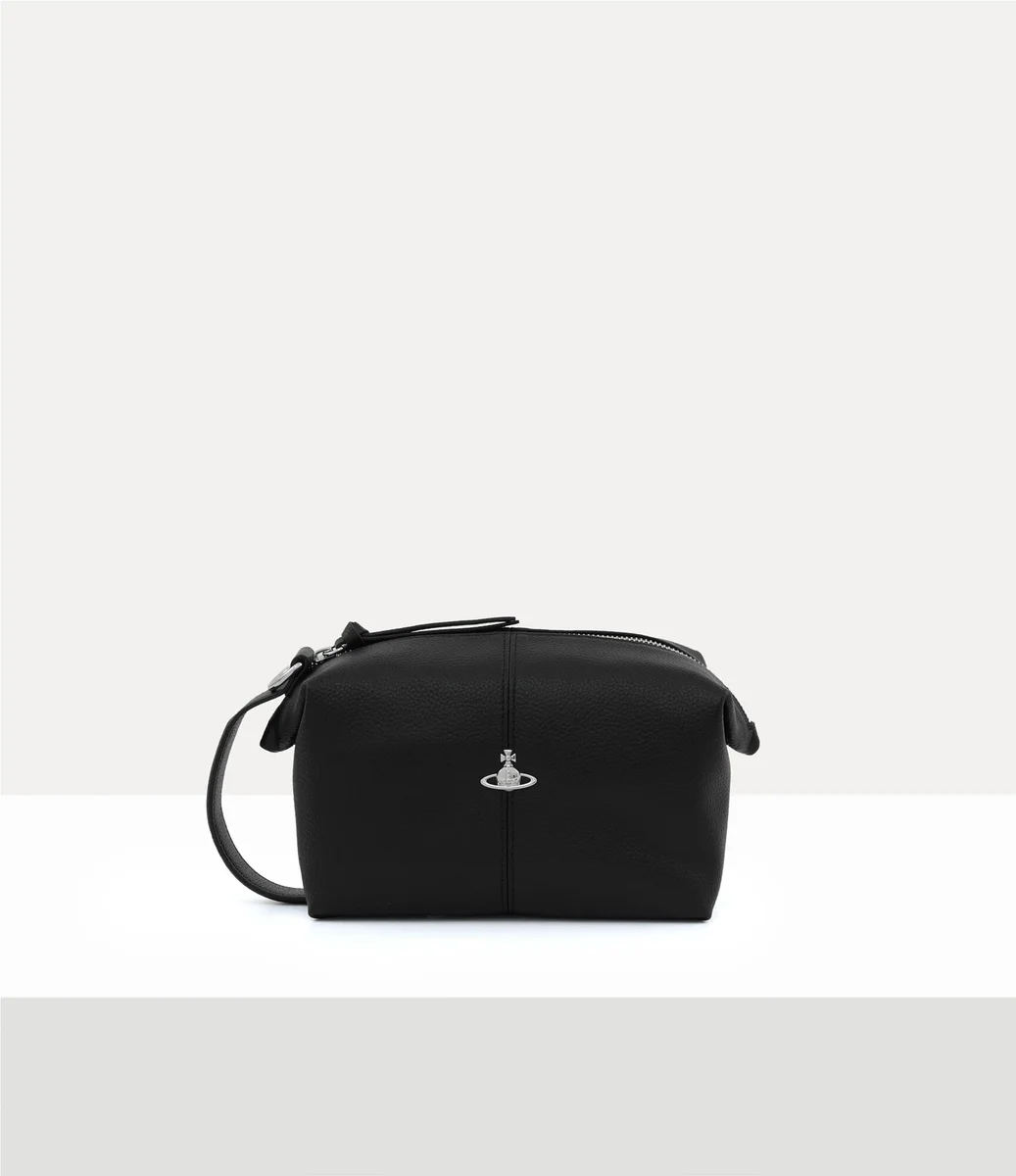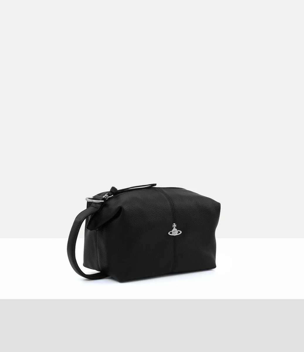 La nostra borsa da toilette è realizzata in pelle PU e presenta una texture martellata naturale su tutta la sua silhouette rettangolare. Progettata con un profilo dalla struttura morbida, la borsa si apre su un interno spazioso ed è rifinita con un emblema tridimensionale color argento sulla parte anteriore, che richiama la visione di Vivienne di lanciare la tradizione nel futuro.