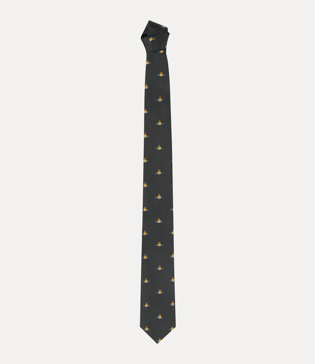 La nostra cravatta in seta presenta il motivo jacquard multicolore Orb della maison, ispirato al motivo a forma di globo simbolo del marchio. Caratterizzata da una lama larga che termina con una classica punta affusolata, questo accessorio riflette la filosofia della maison di collegare il passato al futuro.