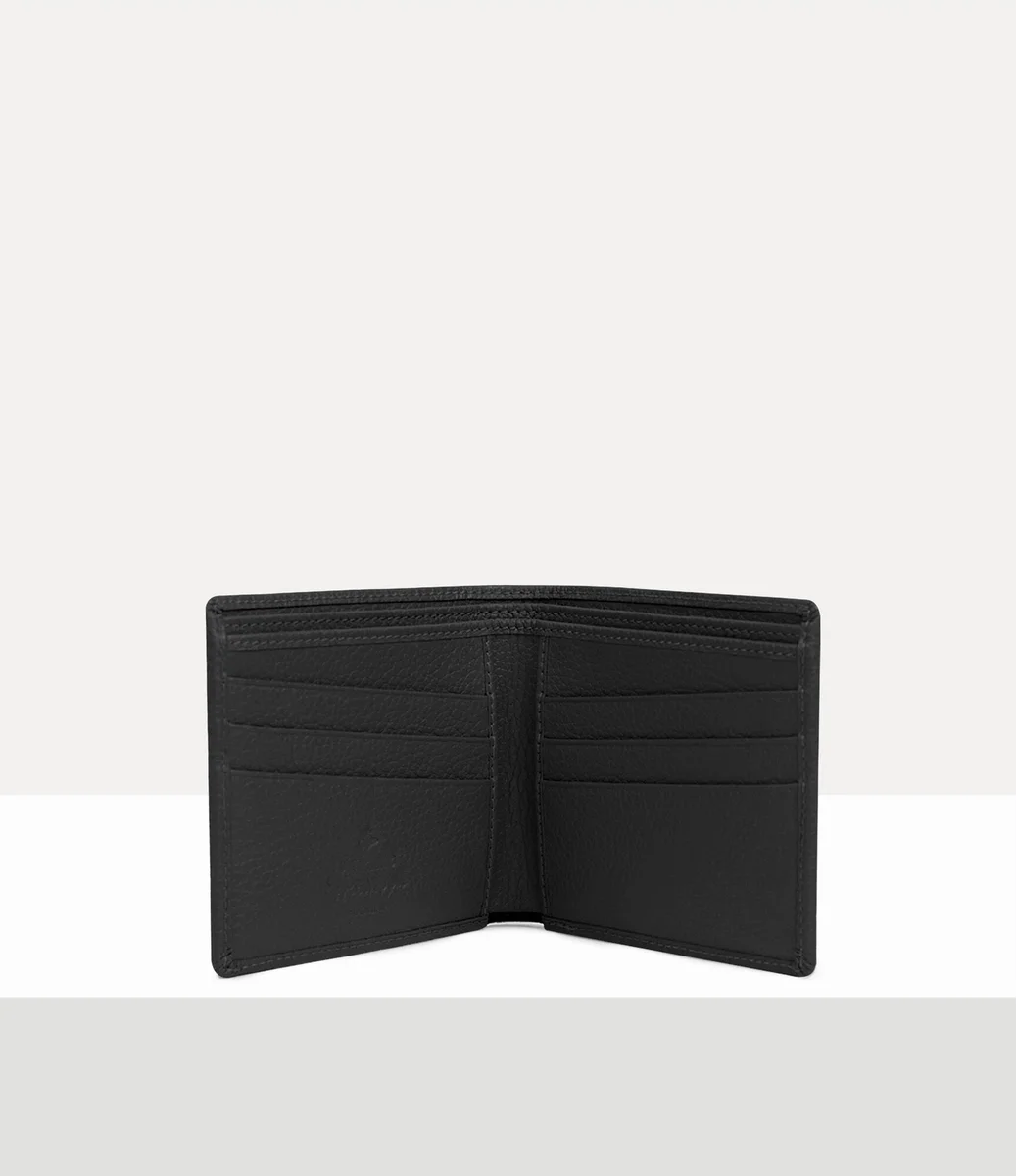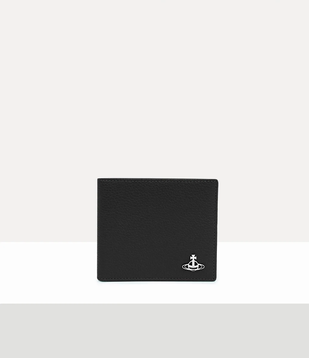 Il nostro portafoglio Man. in pelle PU presenta una texture goffrata con la scritta “Vivienne Westwood” incisa sul pannello interno. La placca sulla parte anteriore del design si ispira all’emblema della nostra maison, che integra l’anello di Saturno per simboleggiare il passaggio della tradizione al futuro.