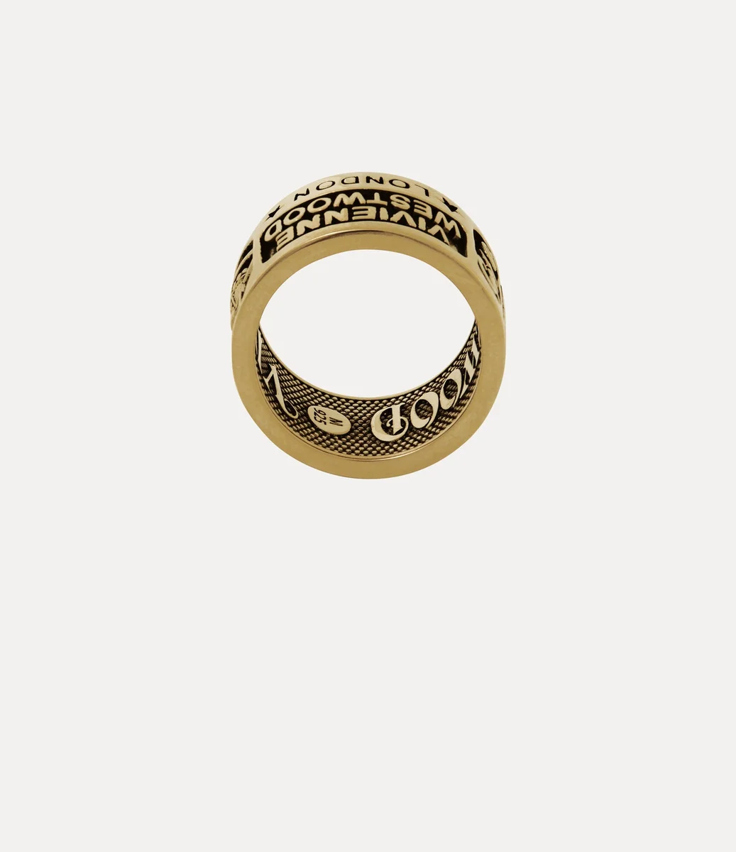 L’anello Lancelot, realizzato in argento riciclato placcato oro, è inciso con frasi e motivi distintivi ispirati alla storia della maison. L’ampia fascia è rifinita con dettagli effetto anticato, mentre la fascia interna presenta l’incisione “Vivienne Westwood” in caratteri distintivi.