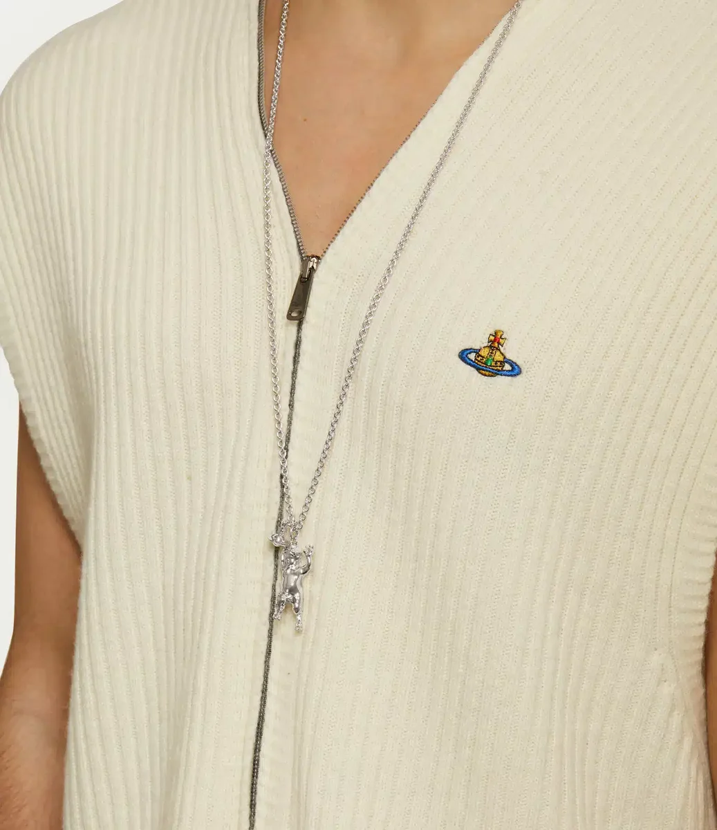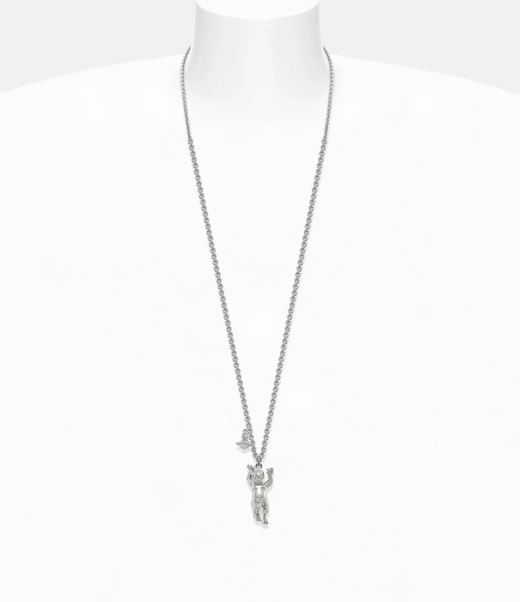 La collana con pendente Man. Satyr presenta un suggestivo motivo satirale al centro, che rende omaggio ai disegni tradizionali dell’iconica era “Britain Must Go Pagan” di Vivienne (1987-1990). Il gioiello è impreziosito da una placcatura color argento e presenta il nostro caratteristico motivo a sfera pendente lungo la raffinata catena, incarnando la filosofia della maison di proiettare il passato nel futuro.