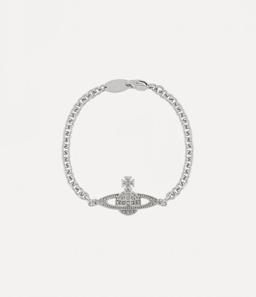 La silhouette del bracciale Man Mini Bas Relief Chain ripropone il nostro motivo orb, sinonimo della visione di Vivienne di portare la tradizione nel futuro. Impreziosito da dettagli in cristallo bianco, il gioiello presenta una catena sottile con chiusura a moschettone, placcata in argento.