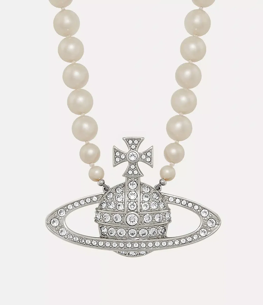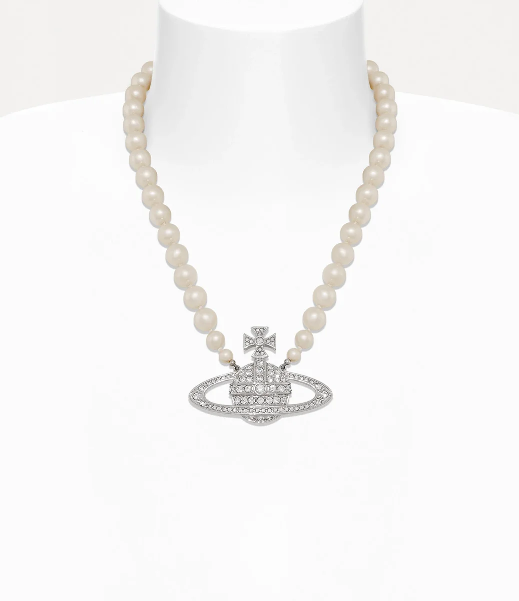 Le perle sono un elemento essenziale del patrimonio della maison, evocando un senso di lusso d’altri tempi. La nostra collana Man. Bas Relief Pearl presenta una fila di perle Swarovski annodate a mano, di dimensioni elegantemente graduate, completata da un motivo a sfera impreziosito da cristalli al centro del design, sinonimo della visione di Vivienne di lanciare la tradizione nel futuro.