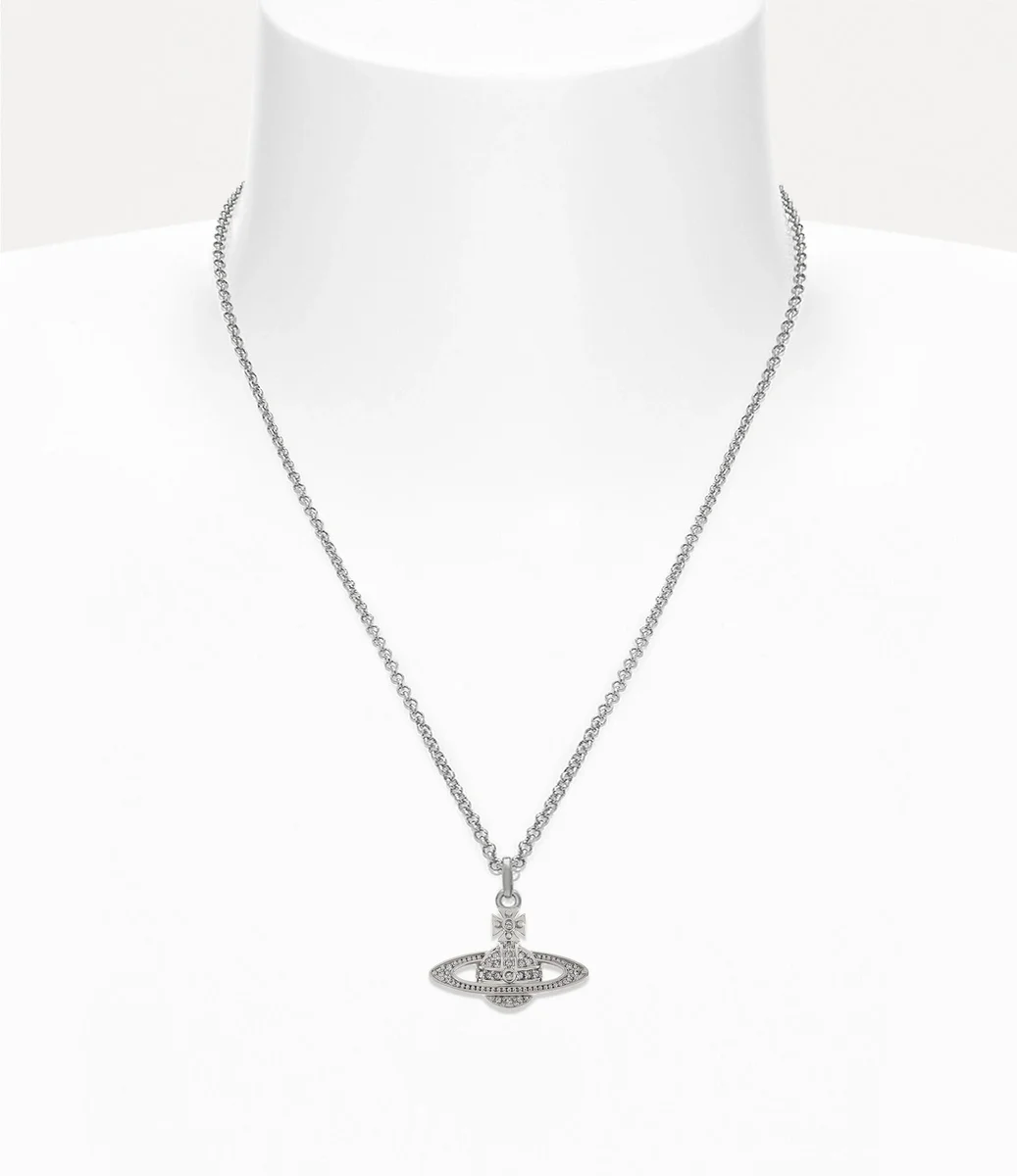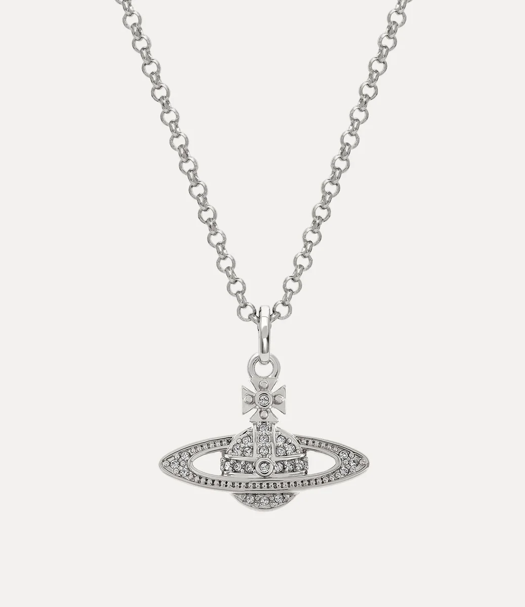 La silhouette orb della maison è sinonimo della visione di Vivienne di portare la tradizione nel futuro. La collana Man. Mini Bas Relief Orb Pendant riprende la forma orb, impreziosita da dettagli in cristallo bianco e placcatura color argento.