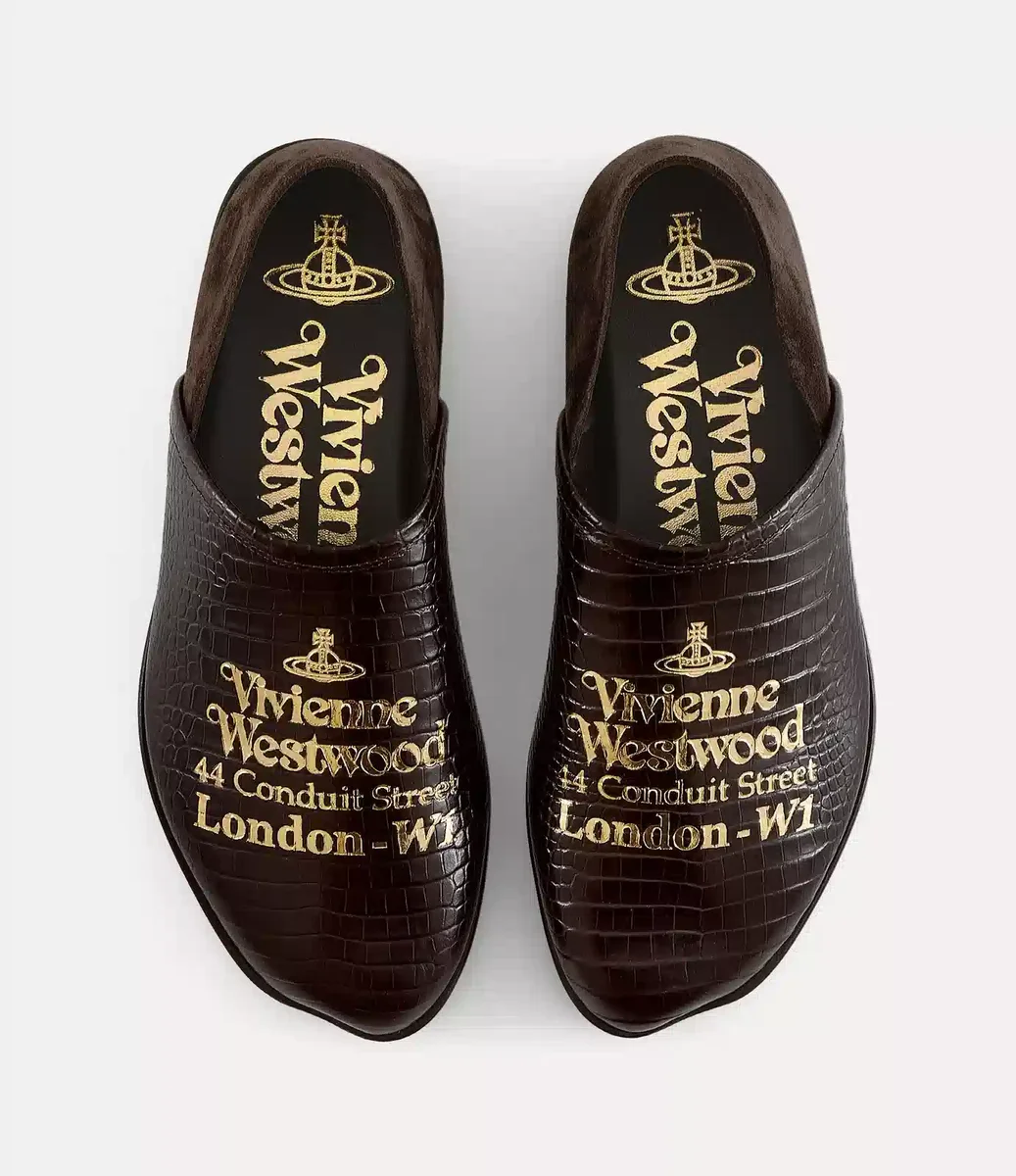 Le nostre pantofole Tuesday d’archivio sono state ripensate in pelle goffrata con effetto mini coccodrillo, con un tallone flessibile che può essere indossato su o giù. Progettate con la nostra forma anatomica distintiva, che richiama le scarpe “Animal Toe” d’archivio, sono rifinite con il nostro indirizzo del flagship store di Londra impresso sulla parte anteriore.